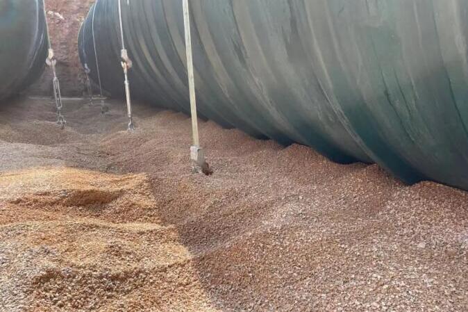 選用直徑3-12mm的普通碎石均勻回填至罐頂